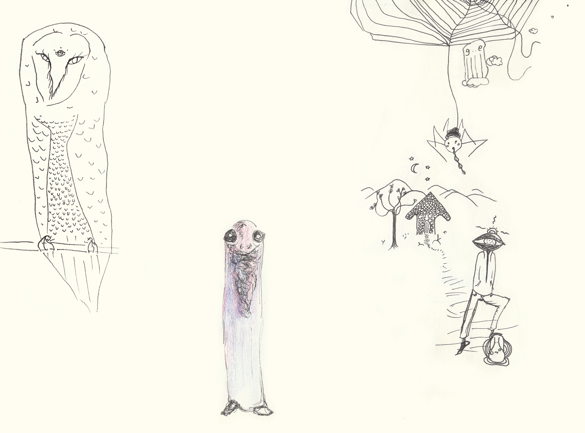 I love sketching on paper and inventing funny characteres and curious scenes. There is a certain freedom in sketching which makes creating so much fun beacause everything seems possible. These might even be my favourite pieces of art, as they are raw, real and not overthought.